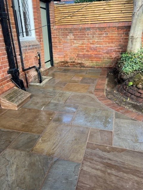We can install any type of Patio you desire using various types of paving including Indian Sandstone, Porcelain